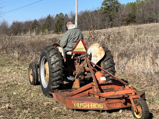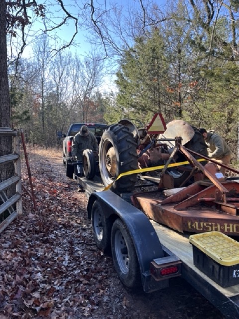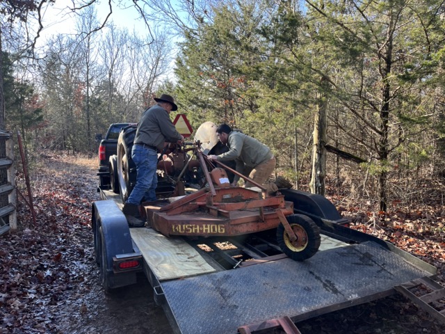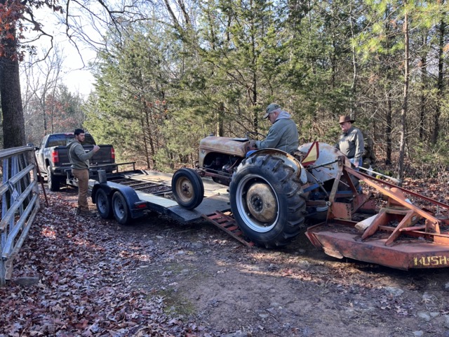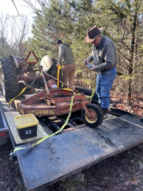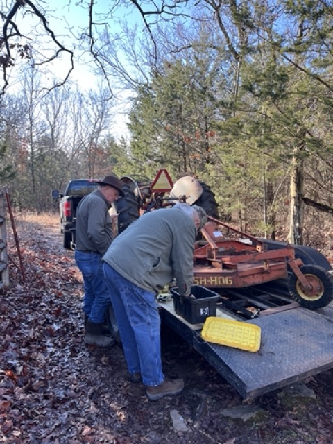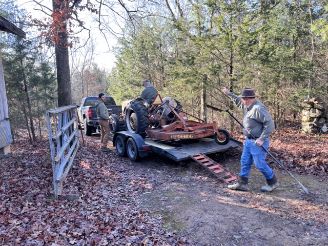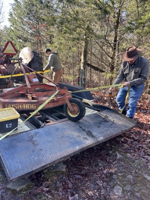Below are pictures of Pastor loading up his tractor and bush-hog to go mow the church property....Special thanks to Wayne and Ely for the help.